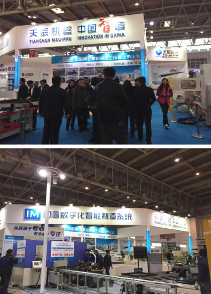 展會期間,天辰股份攜數(shù)控雙料鋸切中心、數(shù)控四頭組角生產(chǎn)線、數(shù)控仿型銑、高速四軸加工中心、五金鉸鏈自動生產(chǎn)線等高端設備強勢登陸國際展覽中心E4館 306展位。近四百平米的超大展位,天辰股份傾力打造“IM門窗數(shù)字化智能制造系統(tǒng)”,同時將手機APP與門窗加工設備進行現(xiàn)場數(shù)據(jù)互聯(lián),向廣大客戶展示門窗加工的智能制造系統(tǒng)。展會首天就得到了行業(yè)領(lǐng)導的肯定及廣大客商的好評,成為了本屆展覽會的一個亮點!