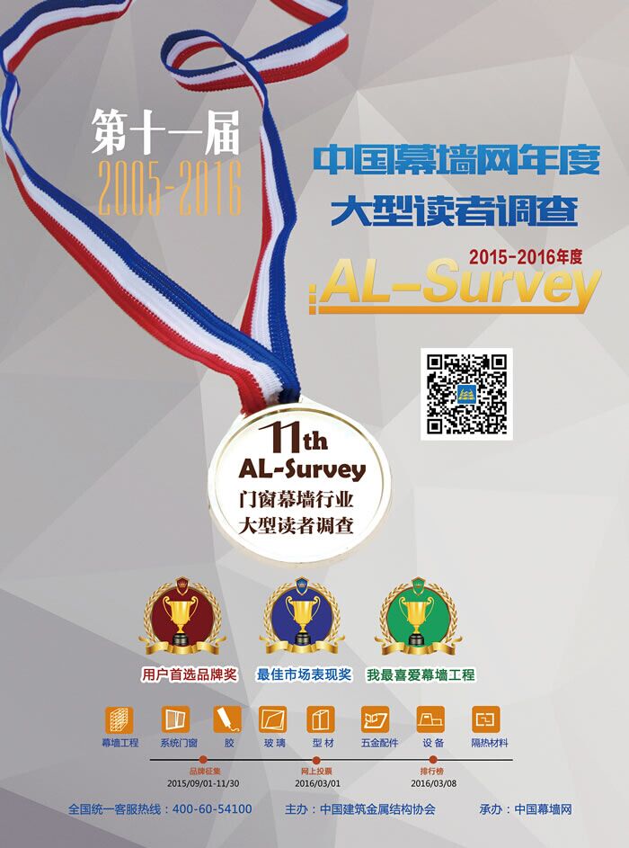 ????? “AL”是鋁門窗幕墻委員會(huì)aluminum的英文開頭首母,“AL”還代表鋁的元素符號(hào),同時(shí),“AL”是中國(guó)幕墻網(wǎng)域名ALwindoor的簡(jiǎn)寫,“Survey”則代表調(diào)查。