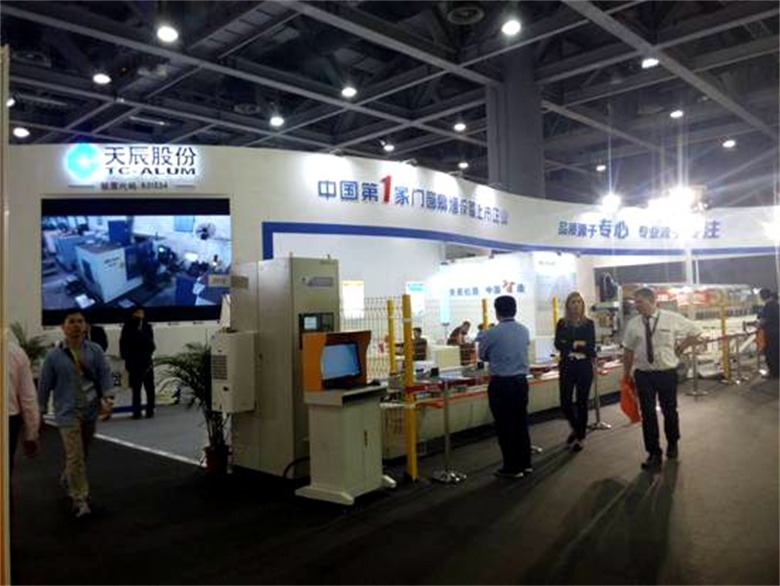 ????????? 2015年3月18日—20日,第21屆全國(guó)鋁門窗幕墻行業(yè)年會(huì)暨鋁門窗幕墻新產(chǎn)品博覽會(huì)在廣州保利世貿(mào)博覽館隆重舉行。濟(jì)南天辰鋁機(jī)股份有限公司攜最新產(chǎn)品亮相本屆展會(huì),展位號(hào):2號(hào)館2512。作為行業(yè)內(nèi)門窗幕墻加工設(shè)備領(lǐng)域的領(lǐng)軍企業(yè),天辰股份首次展示了新型高端數(shù)控雙料鋸切中心、五金鉸鏈自動(dòng)生產(chǎn)線以及新型鋁門窗液壓重型組角機(jī),成為了本屆展覽會(huì)的一個(gè)亮點(diǎn),展會(huì)首天就得到了行業(yè)領(lǐng)導(dǎo)的肯定及廣大客商的好評(píng)!