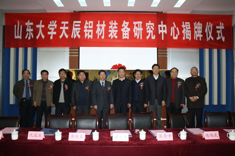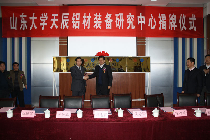 2012年12月26日上午,濟南天辰鋁機制造有限公司與山東大學(xué)工程機械學(xué)院產(chǎn)學(xué)研合作揭牌儀式在濟南天辰電教室隆重舉行。