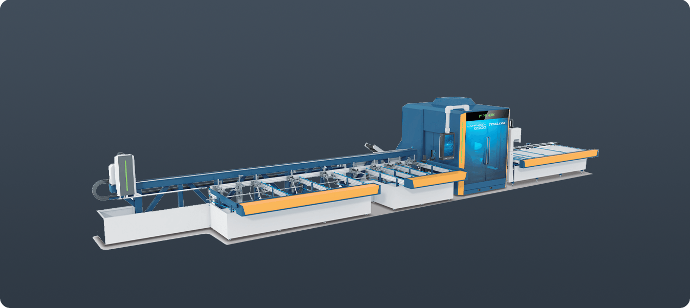 實現(xiàn)鋁型材一站式激光鋸銑復(fù)合加工。集任意角度切割、孔槽鉆銑、激光切割與激光刻線于一體??梢淮瓮瓿尚筒乃膫€面的任意孔槽加工,并可通過斜向下刀實現(xiàn)隱藏排水、斜向銷釘?shù)忍厥饪撞鄣募庸?。兼顧高精度與高效率,并具有占地小、功能全。智能化等突出優(yōu)勢。